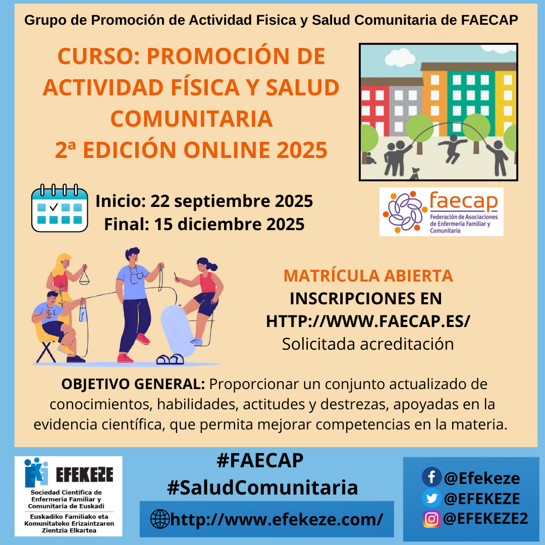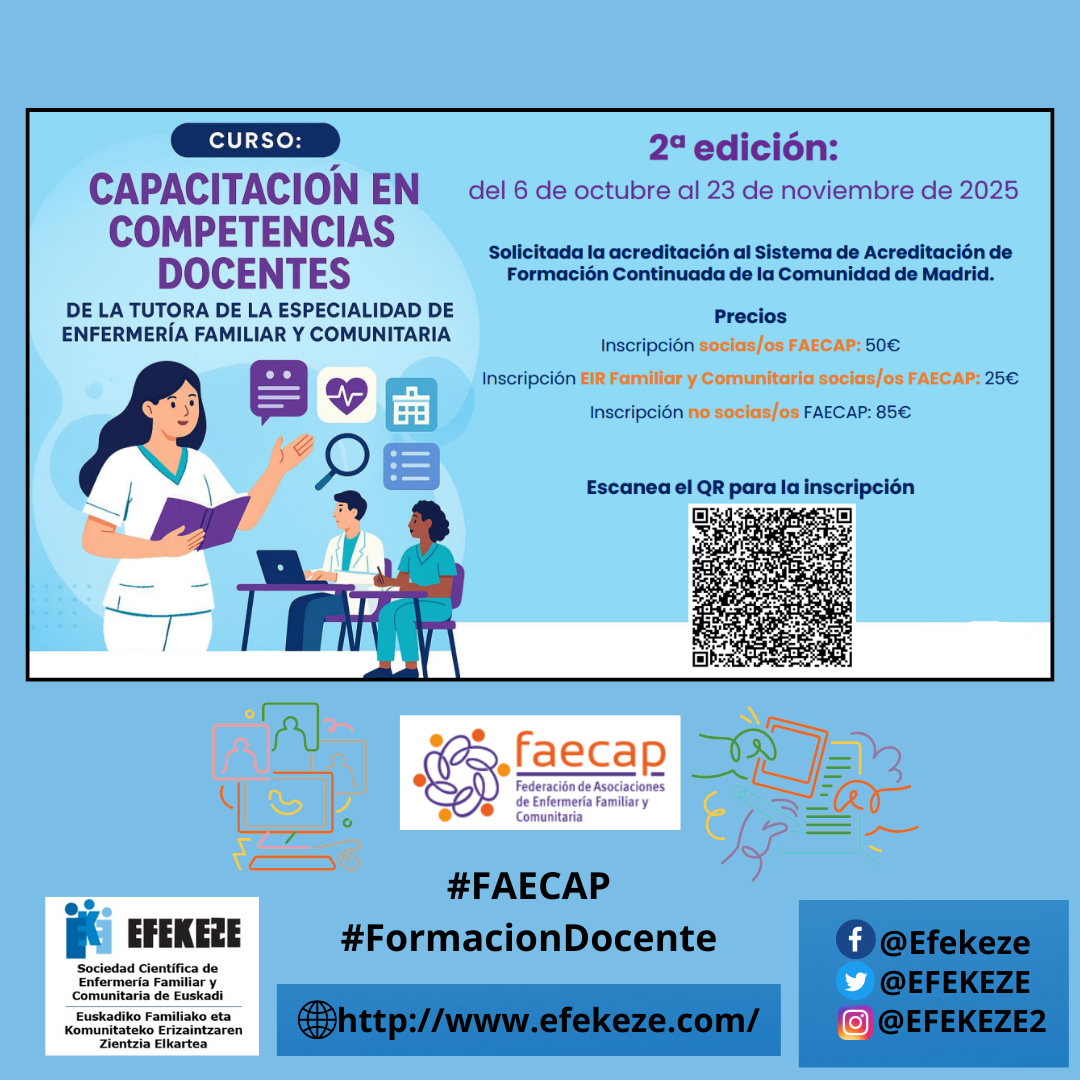 EFEKEZE forma parte de FAECAP (Federación de Asociaciones de Enfermería Familiar y Comunitaria).